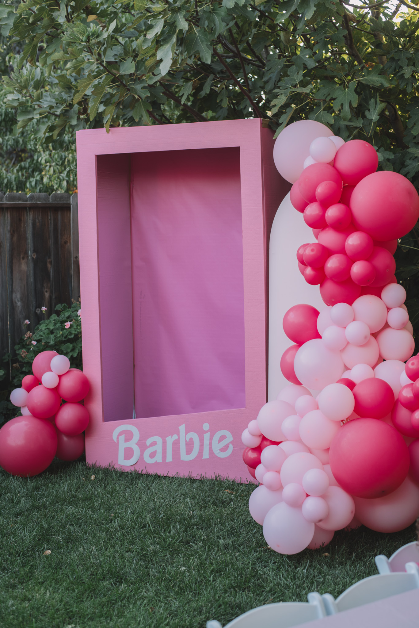 Display: #barbietheme #tsinglepanel #balloonarch #fabricbackdrop and #balloongarland with a custom #barbiebox 🎀